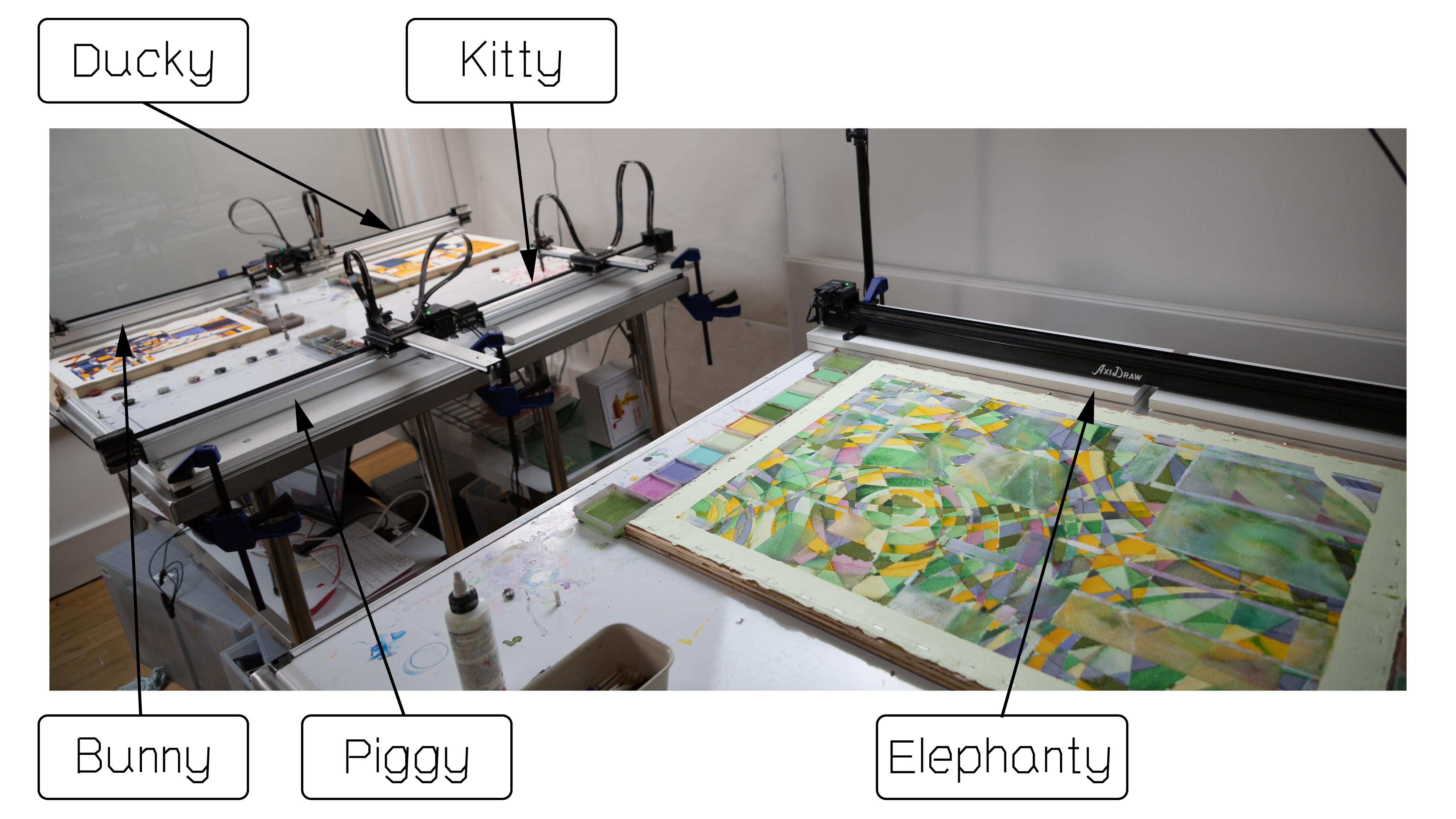 Painting with plotters takes a combined effort from 3 directions: